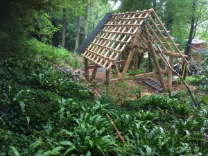 What seems now like a very long time ago when I lived in Belize I had my first experience of a community building project. We helped a family to build their home, a simple and humble hut built from natural materials. The whole village came out to help; women, children, young and old, all dug with their hands, sticks, make-do tools or what ever they had to hand. Slowly bit by bit from the foundations upwards the hut grew. Back in the UK I felt inspired to continue this tradition which must surely have been common place here too not so long ago. Adrian Leaman (Wholewoods)